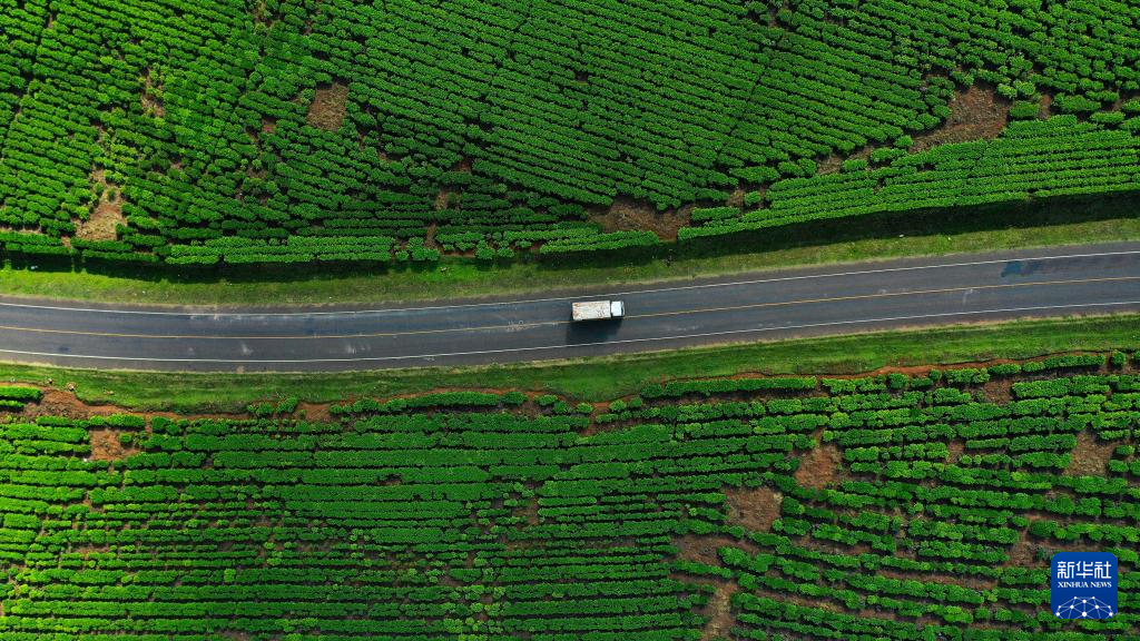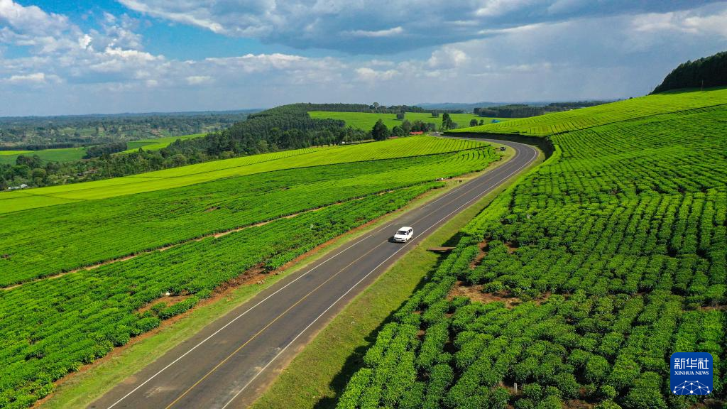 这是2月4日在肯尼亚西部尼亚米拉郡拍摄的一处茶园(无人机照片)。