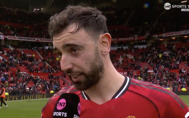 英超第25轮,曼联主场2-0击败热刺,此役打入一球的曼联队长布鲁诺-费尔南德斯赛后接受了TNT体育的采访。