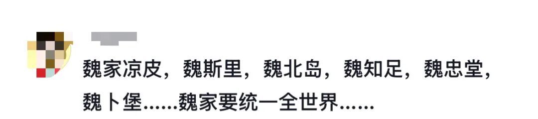 如今,去魏家宇宙里当一次“大魏王”,已经成了不少年轻人年假期间的旅游项目。一些在外地受了魏家凉皮照拂的孩子,把魏家凉皮吃成了人均20块的工作餐,听说魏家凉皮早已开成了主题乐园后,就彻底按耐不住想要去游玩一番的心。