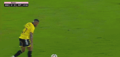 第25分钟,巴塞罗那SC球员射门,迈阿密国际后卫将球封堵