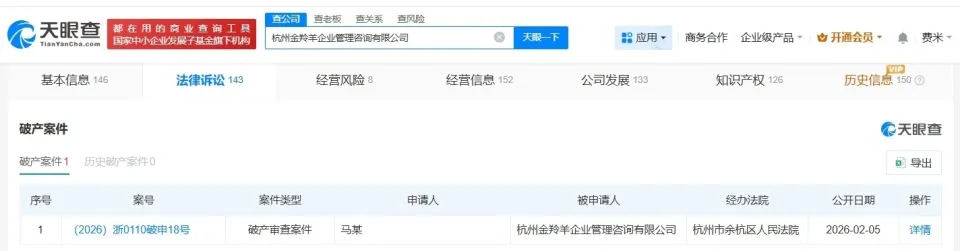 从被列为被执行人,到创始人多次被限高,再到如今被申请破产审查,杭州金羚羊的财务状况早已陷入绝境。