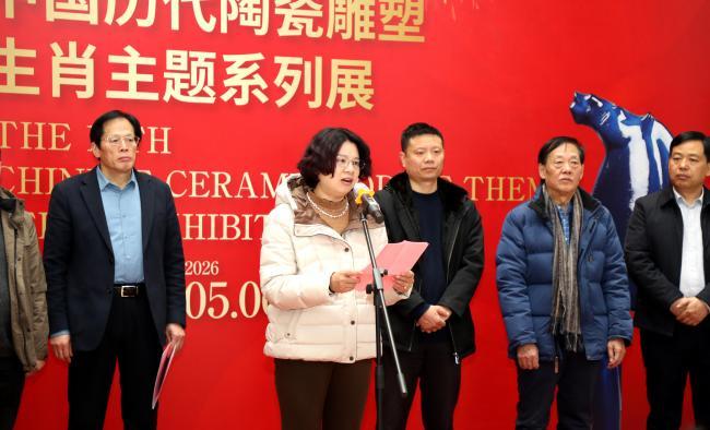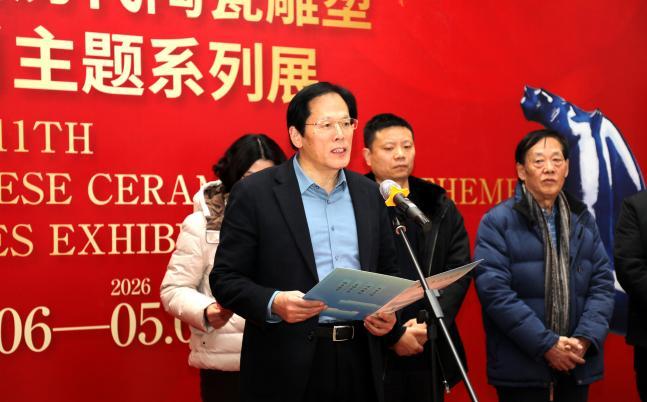 “金马迎春——第十一届中国历代陶瓷雕塑生肖主题系列展” 2026年2月6日在上海浦东新区金海文化艺术中心开幕。展览由平顶山学院、上海市浦东新区文化艺术指导中心、上海工程技术大学联合主办,平顶山学院党委书记华小鹏,上海工程技术大学党委副书记朱晓青,上海市浦东新区文化艺术指导中心专职副书记毕震钧,浦东新区金海文化艺术中心主任周建义,上海工程技术大学国际创意设计学院院长顾艺,平顶山学院终身教授、陶瓷学院院长梅国建,平顶山学院陶瓷学院党委书记余保明等出席。