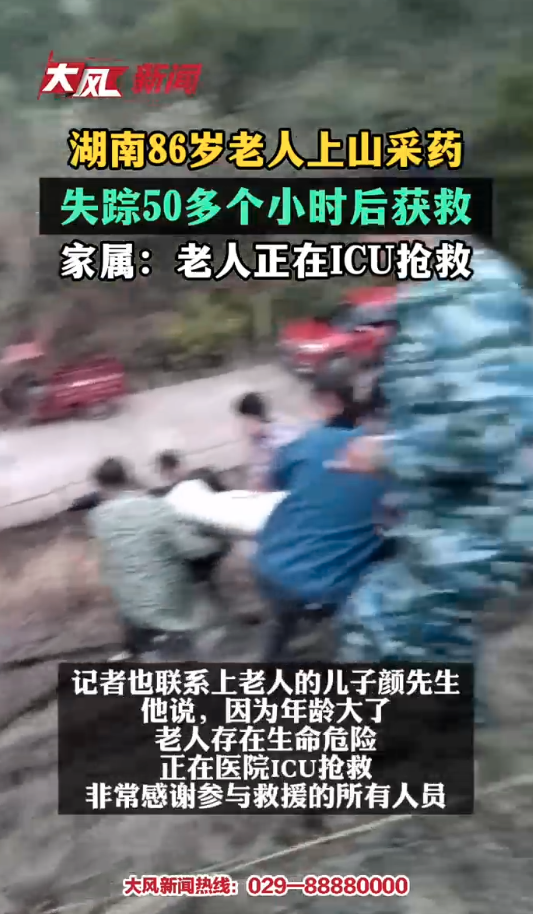 记者联系上老人的儿子颜先生,他说,因为年龄大了,老人存在生命危险,正在医院ICU抢救,非常感谢参与救援的所有人员。
