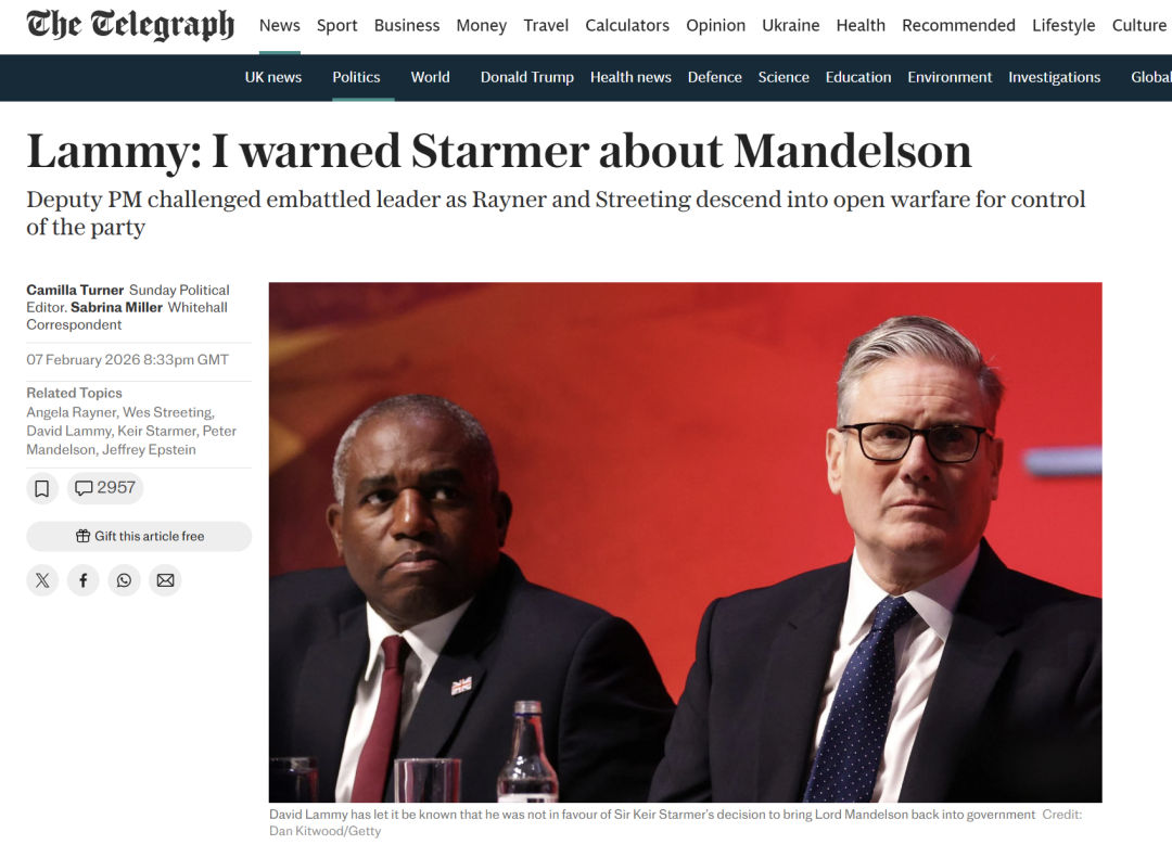 此前,英国前副首相雷纳也对朋友称,她也曾警告过斯塔默,委任曼德尔森为驻美大使是一个错误的决定。