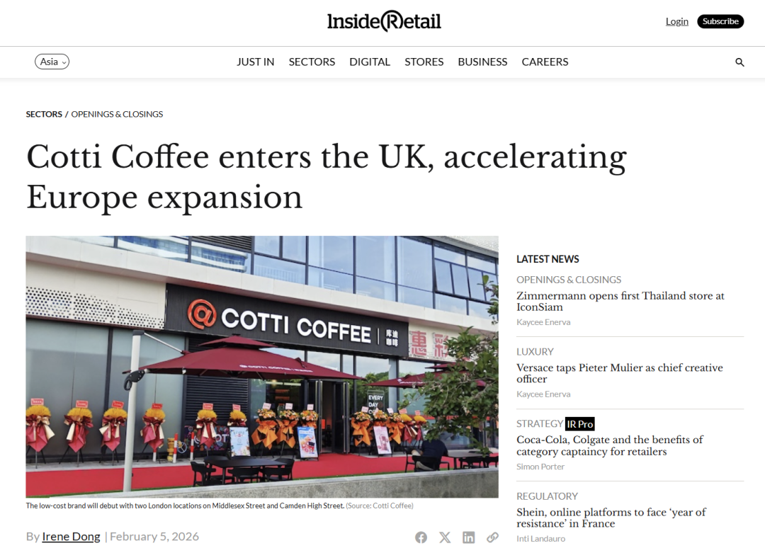 ● 库迪咖啡在英国开设两家门店,持续推进欧洲市场布局