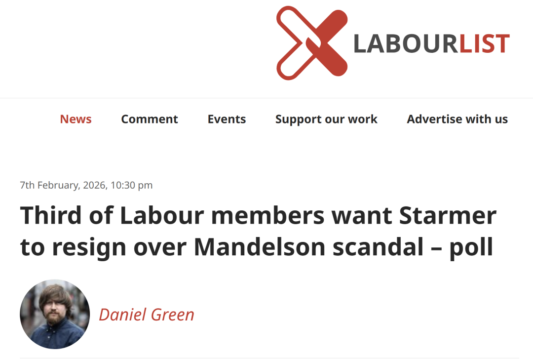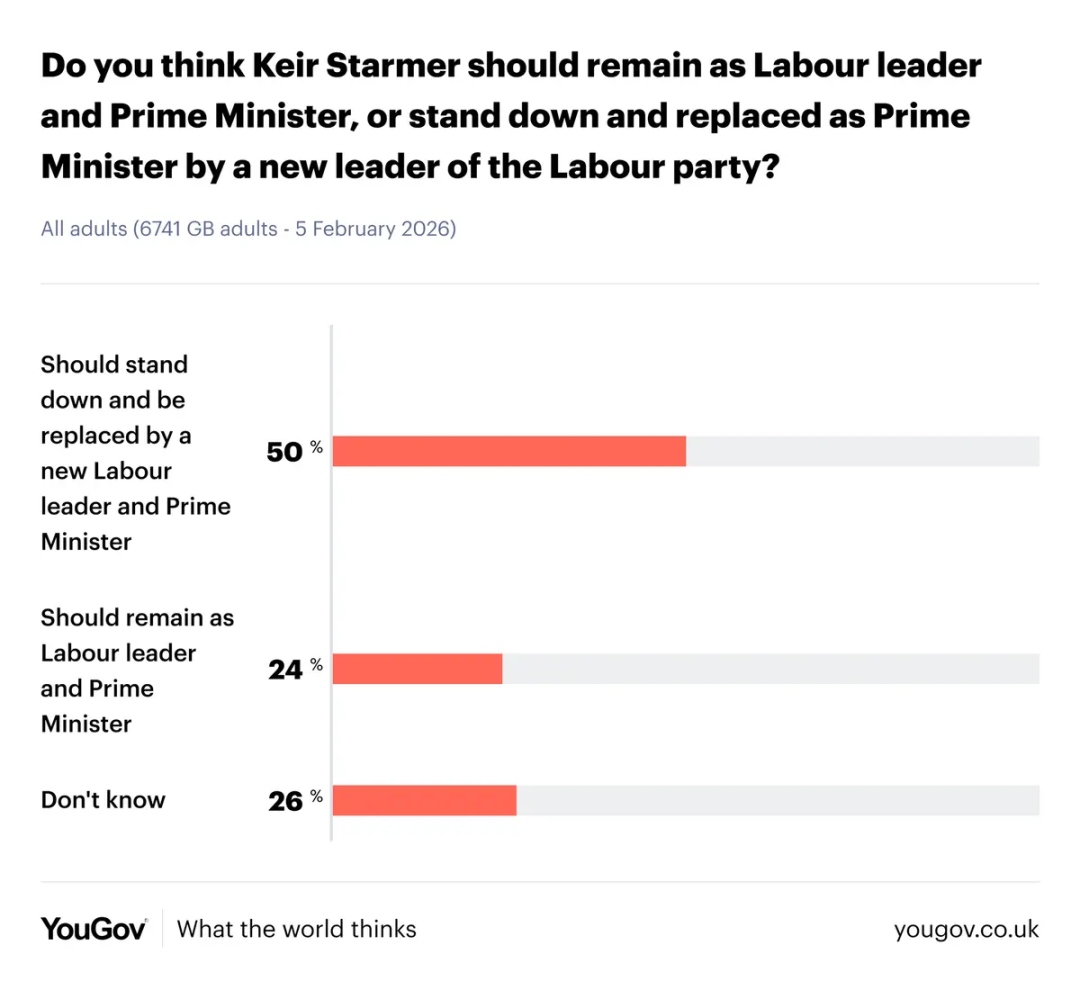 ● 多项民调显示,过半英国人要求斯塔默因曼德尔森丑闻立刻辞职