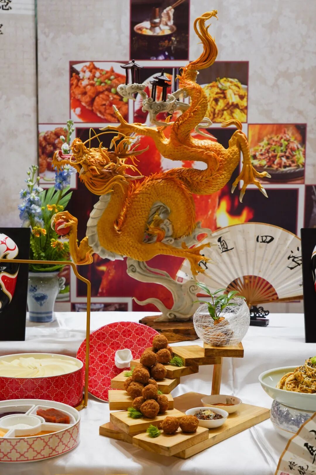 “我们希望让年夜饭的每一刻都充满记忆点,比如,为蒸笼菜设计了‘开盖仪式’,会邀请席间年长的客人揭盖,寓意‘蒸蒸日上’,服务人员也会送上祝福,让用餐过程更具仪式感。”袁兵说,“酒店还将在大堂组织写春联、川剧变脸巡演,设置全家福合影区,为客人提供红色唐装、围巾、马年主题玩偶,以及胸针等配饰,让每位客人拍照时都能身披一抹喜庆的红色。”
