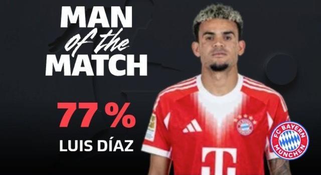 北京时间2月9日,在德甲第21轮的比赛中,路易斯-迪亚斯上演的帽子戏法帮助拜仁慕尼黑主场5-1大胜霍芬海姆,赛后这位哥伦比亚球星当选全场最佳球员。
