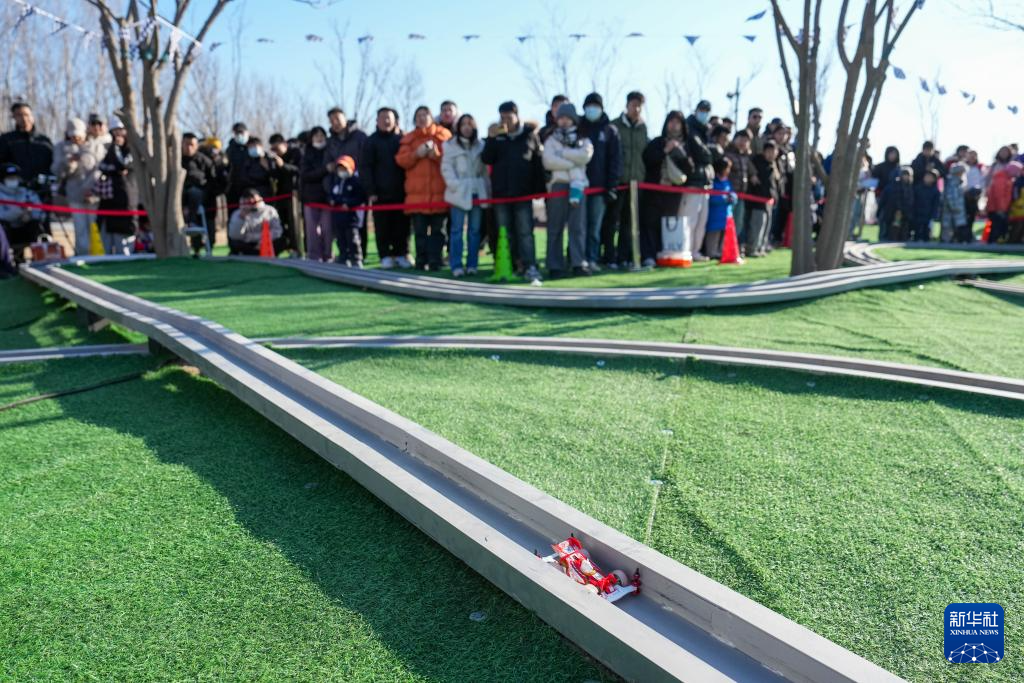 北京温榆河公园内的迷你四驱车赛道长88米,平日对市民游客免费开放,吸引了许多迷你四驱车爱好者,也成为不少小车迷冬日里玩耍、锻炼的乐园。