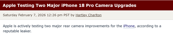 近日,CNMO注意到,有报道称,苹果正在为下一代iPhone测试两项重大后摄升级,涉及iPhone 18 Pro与iPhone 18 Pro Max两款机型。