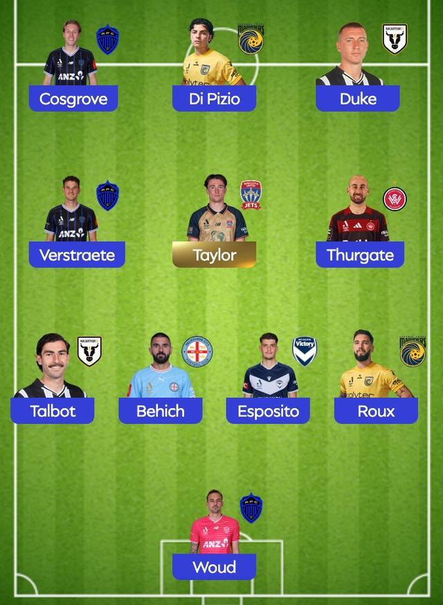 瑟盖特(西悉尼流浪者)、克莱顿-泰勒(纽卡斯尔喷气机)、路易-韦斯特拉特(奥克兰FC)