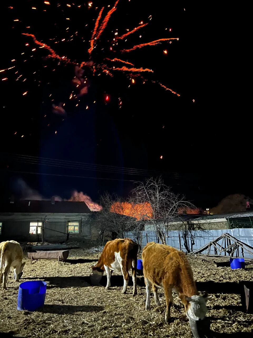 草原上没有信号,周围都是雪,旁边有羊。一辆灰色的坦克300跟着带路的拖拉机,跋山涉水带着老人们过来,轮胎上都是泥。小屋里生着炉火、冒着热气,很暖和,灯光不是特别明亮。舅舅家炖了酸菜血肠等杀猪菜,一家人开了白酒,酒杯围着圆桌一一摆开。酒足饭饱后,十几个人就像夏天的工人们一样,倒在炕上,满足地酣睡。