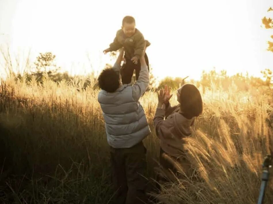 郭弋搏一家三口的合影。