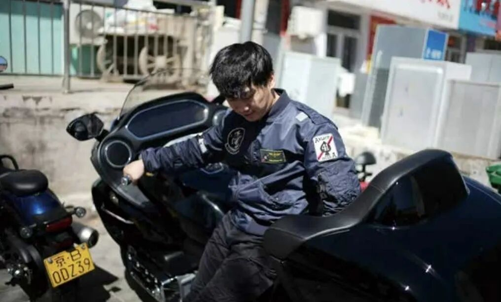 郭弋搏与他的重型机车。