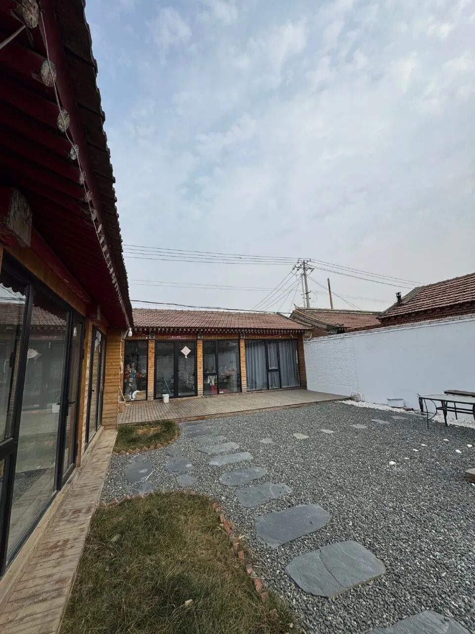 宋庄的房子多为平房小院。夫妇俩自己动手改造小院,郭弋搏设计并铺了石子路,阿梅为房屋刷漆。小院既呈工业风,又有烟火气,很像咖啡bar,还可以“原地露营”。他们有两只爱猫,大橘“小羽”闷头狂睡,即使隔墙痴情的猫咪来打招呼,也不为所动;异瞳三花“乐游原”怕生,藏得不见踪影。