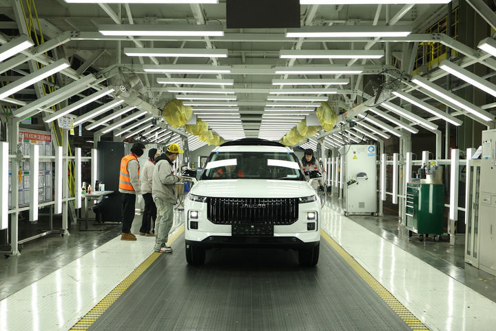 1月28日,工人在奇瑞汽车大连生产基地生产车间组装车辆。