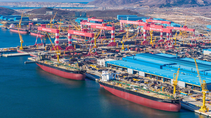 1月4日,4艘超大型原油运输船出坞下水;1月6日,6艘8.2万载重吨散货船出坞下水……节拍化建造、批量化交付,强大的制造能力让其愈发得到来自希腊、挪威等国外船东的青睐。据了解,恒力重工手持订单已经排至2030年。