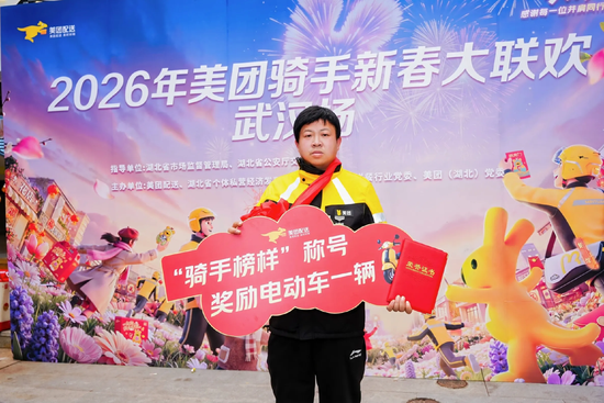“收到奖励很意外,也很受鼓舞,希望能带动更多骑手兄弟们多做一点力所能及的好事。”近日,在郑州举办的美团骑手新春大联欢活动上,孟世祥、刘阳、赵仨好等多名骑手获表彰,也提前领到一份“新春惊喜”——平台发放的一辆新款电动车。骑手孟世祥来自河南夏邑县,因孩子生病求医在北京跑单,2025年6月,他在北京街头勇救一名遭遇恶意追堵、别车的骑行女孩,其义举先后获得平台和警方表彰,还获评“北京榜样”。“我只是一名普通的外卖员,平台的认可和各界鼓励,让我更想把这份善意和温暖传递下去。”孟世祥说。