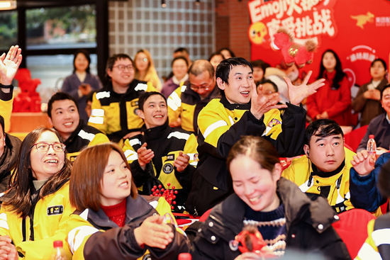 ▲重庆表彰活动后,骑手们参与游戏互动(摄影:蒋楚杉)