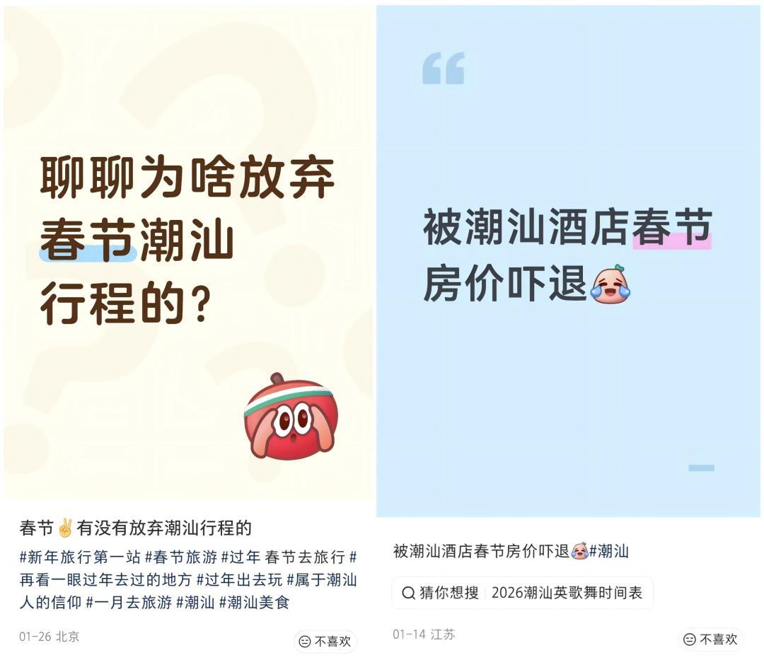 这不,还没过年,有香港、北京、河南、重庆等多地网友,接连在小红书发帖吐槽,想去潮汕过年,却被暴涨的酒店劝退。
