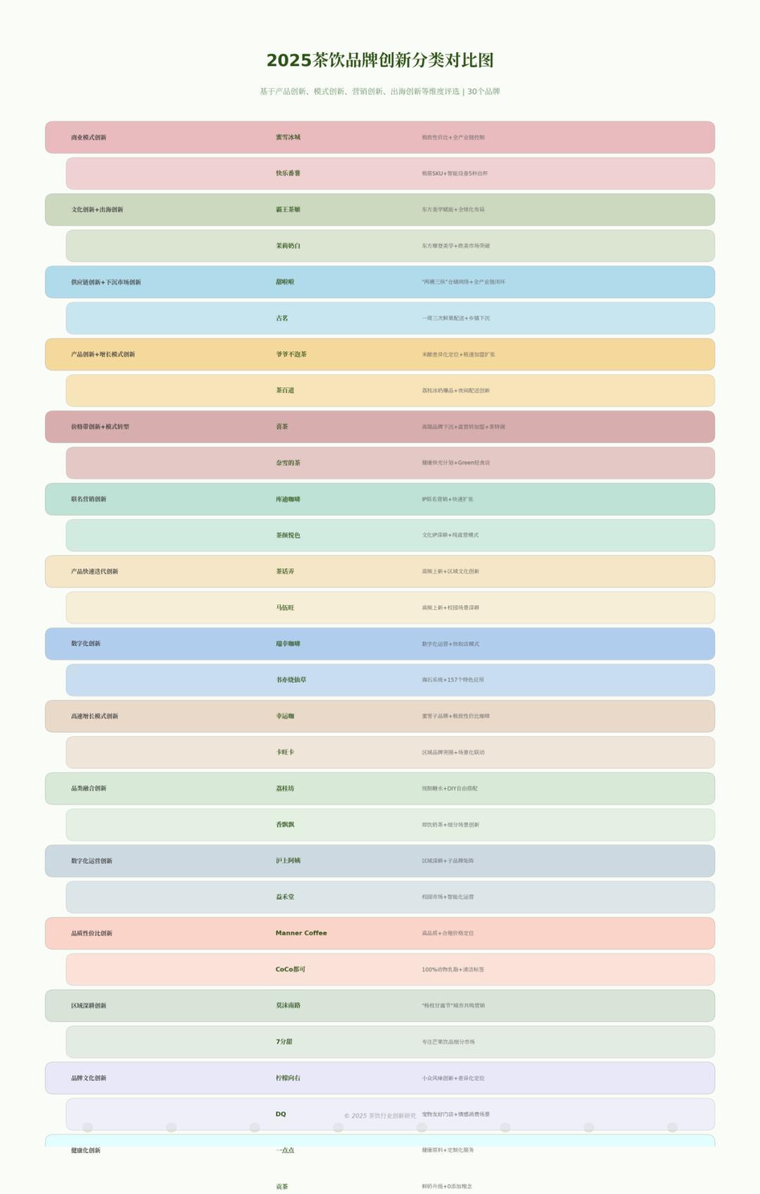 同质化的根源在于创新模式的局限性。当前行业创新主要集中于"配料叠加"(水果、小料、奶基的组合变化)与"概念包装"(季节限定、联名营销、国风设计),而非底层技术的突破或消费场景的重构。其结果是:创新周期缩短(一款新品的"保鲜期"从数月降至数周)、模仿成本极低(头部新品一周内即有跟随者)、消费者审美疲劳(对"上新"的敏感度下降)。