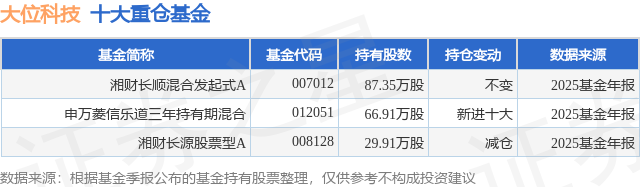 重仓大位科技的公募基金请见下表: