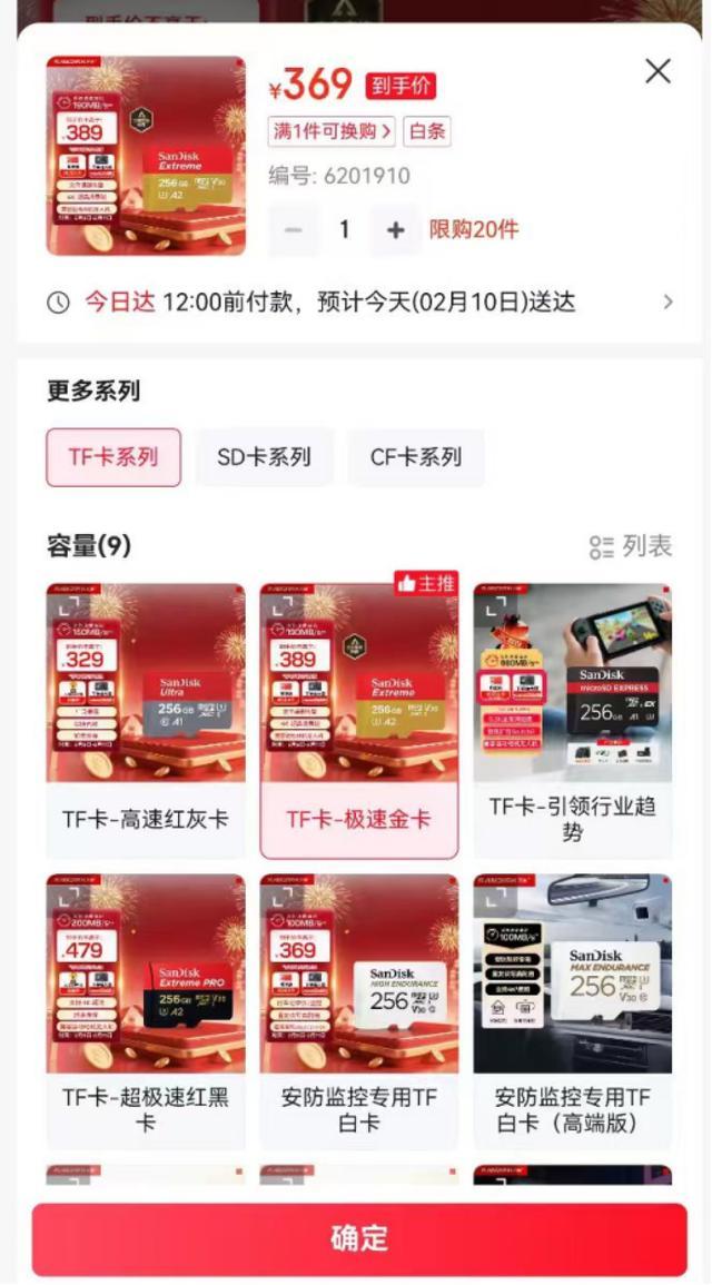 为探究线下市场情况,大河报《看见》记者咨询了郑州赛博数码港大厦里一位数码配件经营者。对方表示,以闪迪256GB高速卡为例,近期线下报价多在430元左右,“从去年10月开始,内存卡的进货价就在慢慢往上涨”。记者同时注意到,2025年12月底,由影视自媒体“影视飓风”运营的商店曾发布公告,提及“核心原材料芯片全球性供应链紧张,成本上升”,并宣布对部分存储卡型号调整价格。