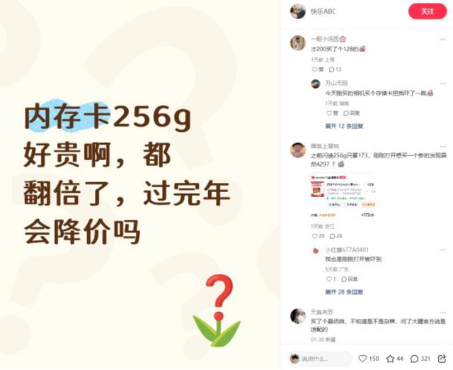 近日,在小红书、微博等社交平台上,有关内存卡涨价的讨论明显增多。有网友晒出订单截图称,去年7月在某电商平台花费168元购的闪迪256GB内存卡,目前价格已翻涨了一倍。