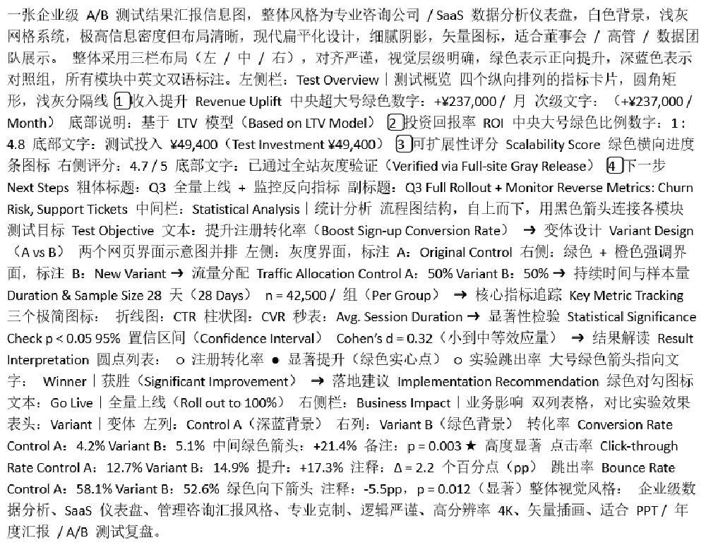 Qwen-Image 2.0的升级重点是文字渲染。在下方关于AB测试的官方案例中,文字的字体、排版、格式等都是由一则888个token(包含近千个中英文字词)的超长提示词精确定义的,而Qwen-Image 2.0可以做到不错的还原。