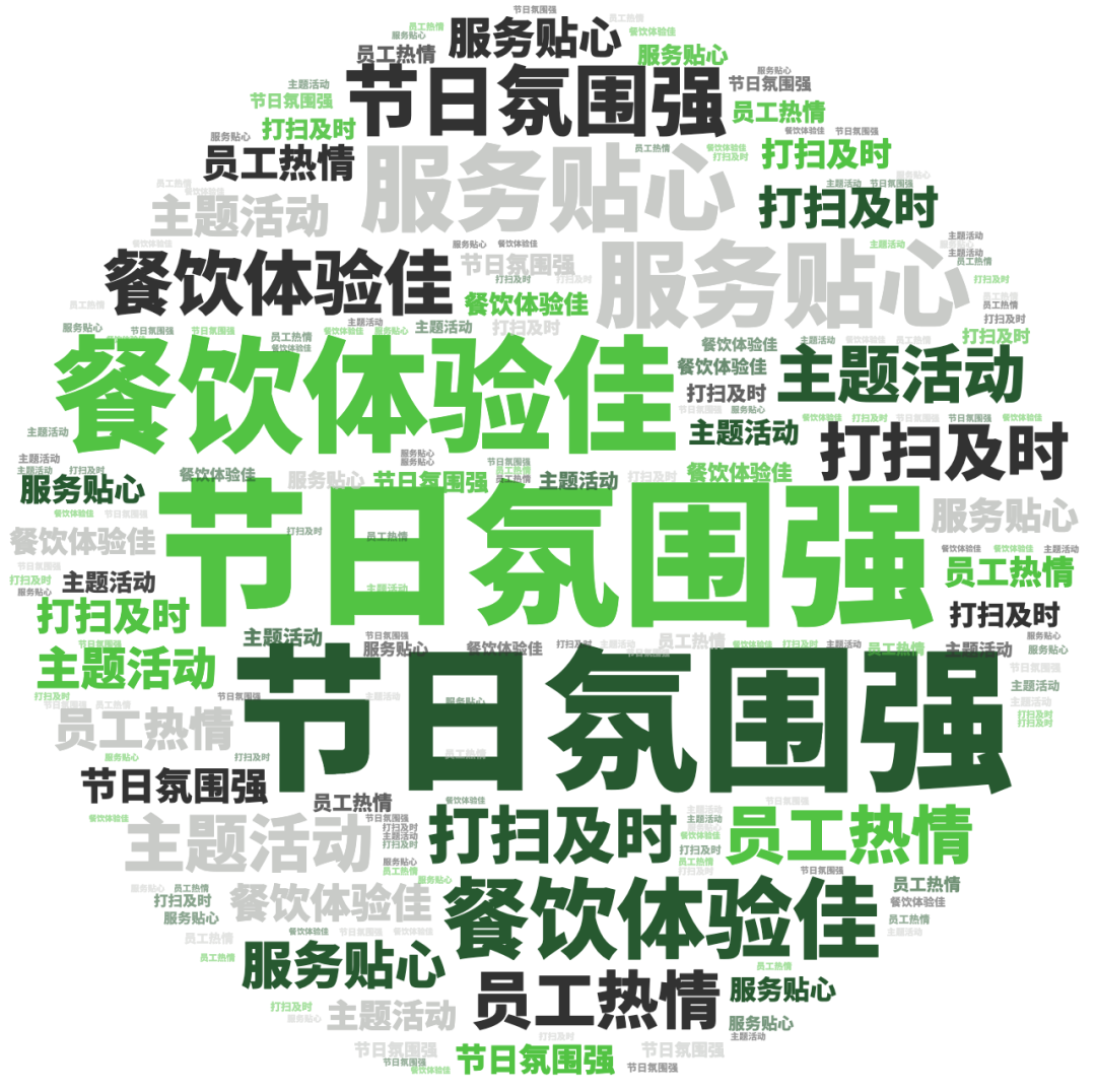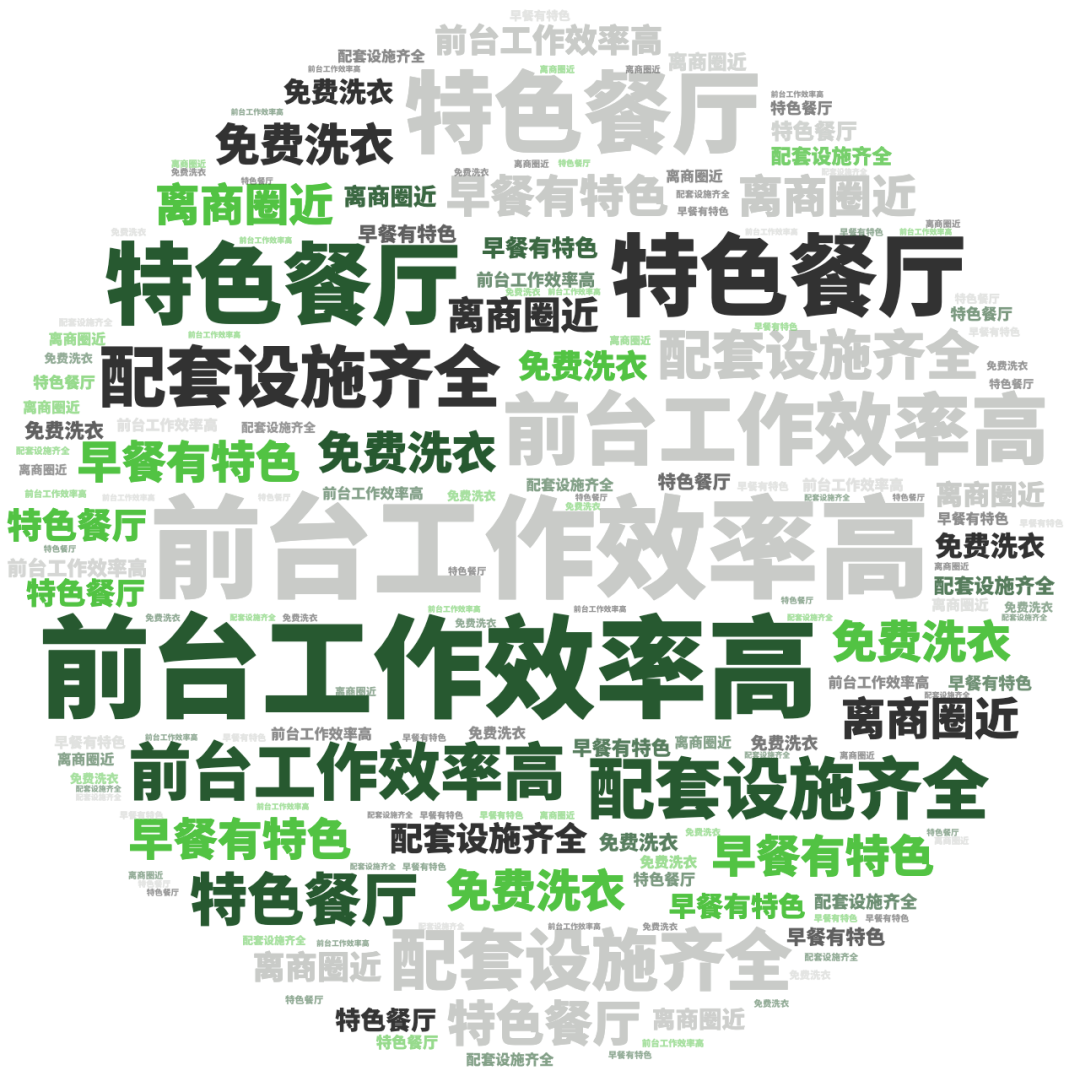 点评指数:点评指数平均得分为138.28,整体呈现回暖趋势,好评维度平均是差评维度的1.92倍。好评关键词主要是前台效率高、特色餐厅、离商圈近等,差评主要集中在灰尘大、有霉味、房型不对等问题。