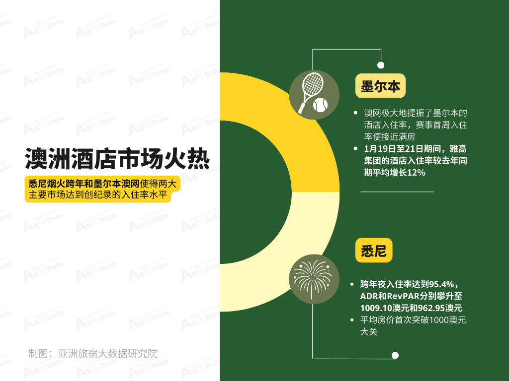 此外,受到跨年烟花活动的提振,澳大利亚另一主要市场悉尼的平均ADR达到了历史新高。在2025年末最后一晚,悉尼的入住率达到95.4%,ADR和RevPAR分别攀升至1009.10澳元和962.95澳元。这些均创下了该市场有史以来的最高平均房价和平均客房收益的纪录,也是平均房价首次突破1000澳元大关。