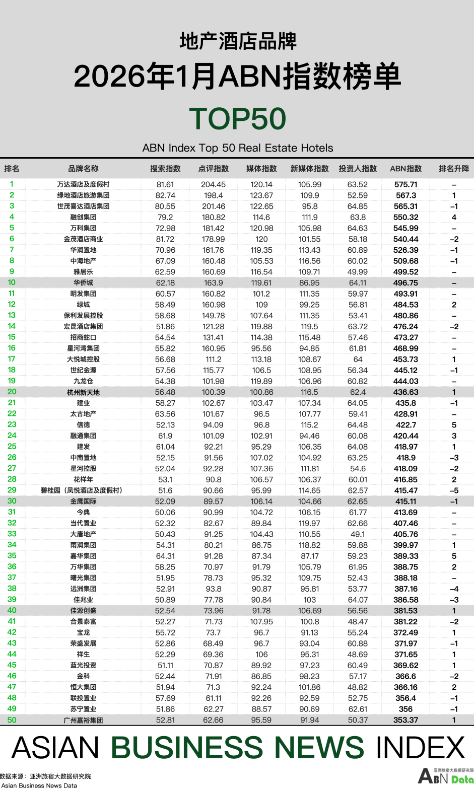 地产酒店50强榜单