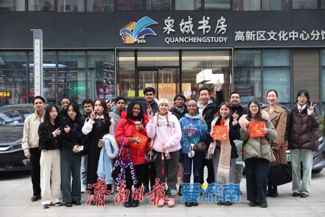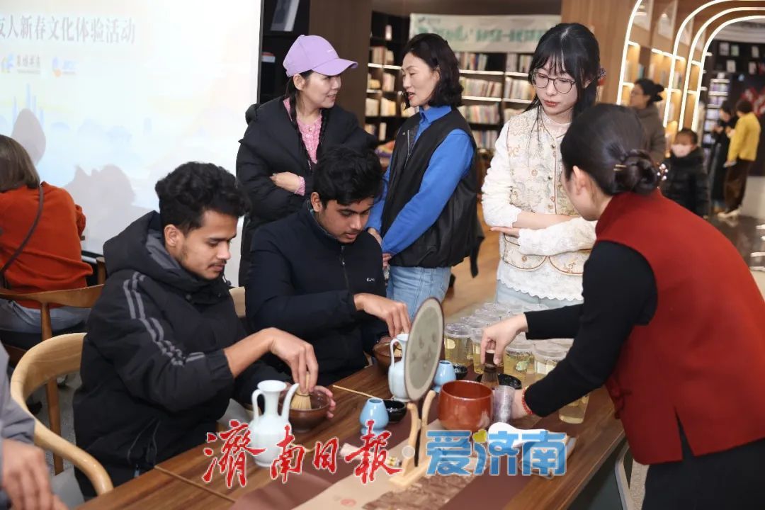 值2026年农历新年到来之际,为促进中外文化交流、营造温馨祥和的新春节庆氛围,济南国际传播中心联合泉城书房高新区文化中心分馆、比亚迪中国、山东财经大学国际教育学院、山东新中鲁中医医院、正山堂·超然红茶叶品牌、济南职业学院公共与国际教学部等单位及部门,在济南泉城书房高新区文化中心分馆成功举办“泉韵中国年·四海共安康”——外国友人新春文化体验活动。本活动得到了济南高新区管委会教育文体部的指导支持。来自多个国家的23名外籍友人齐聚一堂,通过沉浸式文化体验,共同触摸中国传统文化脉搏,感受中华新春民俗的独特魅力。