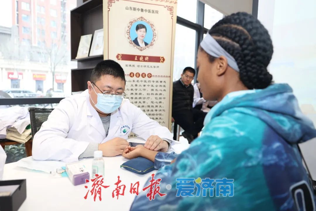 在山东新中鲁中医医院专家的带领下,外籍友人亲身体验了中医脉诊、舌诊等传统诊疗方法,并尝试了耳穴压豆、推拿等中医外治疗法。郝骏、王晓妍、时晋泰等中医专家现场提供健康咨询与养生指导,展现中医“治未病”的智慧与人文关怀。中医药食同源的美食品鉴,更让参与者在味觉中感受中华养生文化的博大精深。