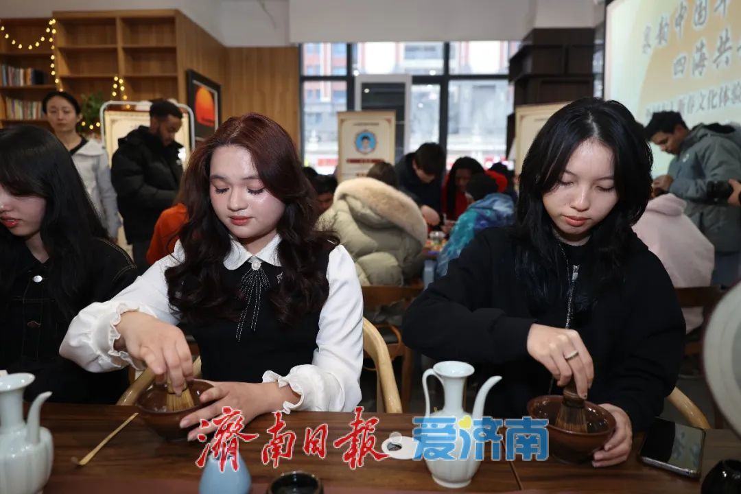 体验环节结束后,中外友人齐聚茶叙区,品尝由山东新中鲁中医医院特别提供的药食同源系列茶点——中鲁益源八珍酥、六物山楂棒等传统特色茶点,自由交流体验感受。大家在轻松融洽的氛围中分享文化感知,畅谈对不同传统的理解与共鸣,友谊在笑声与对话中悄然深化。