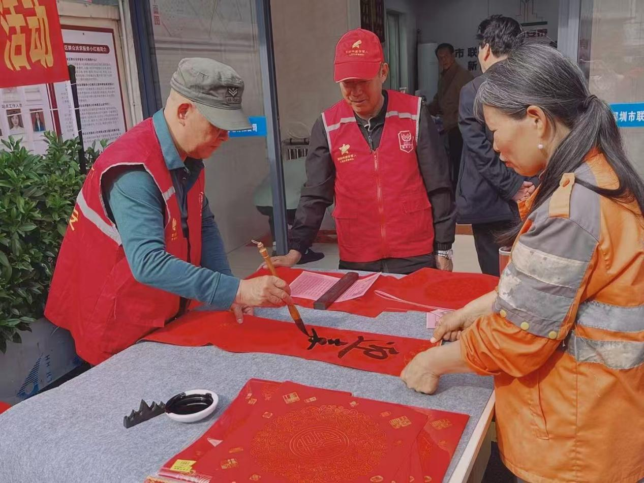 活动现场飘着淡淡的墨香,几张长桌铺满了红纸。红星志愿队的退伍老兵们精气神十足,手握毛笔不慌不忙,落笔沉稳又舒展。居民们围在四周,有的凑近端详笔画,有的一边念一边讨论对联的意思,还有的轻手轻脚帮着把写好的春联移到一旁晾干,整个场面热闹又融洽,空气里都漾着暖洋洋的年味。