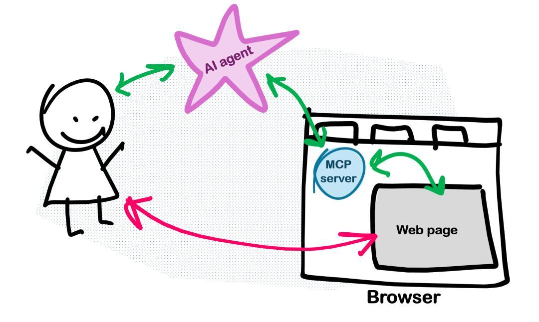 用户、网页、智能体三者共享界面,共同协作。