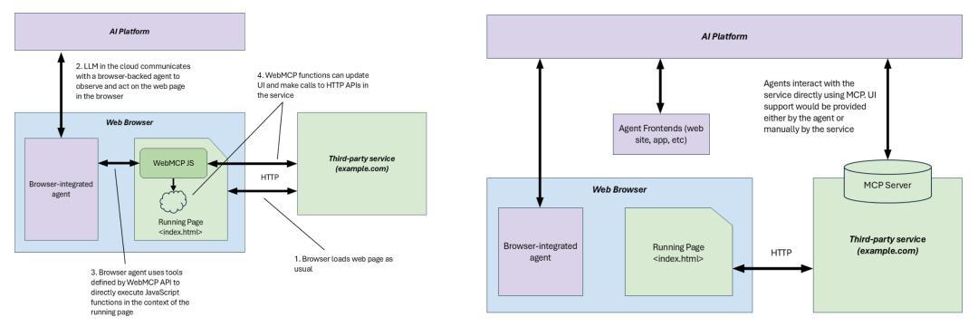 与后端集成不同,WebMCP工具在客户端执行,只有在智能体加载页面后才可用。