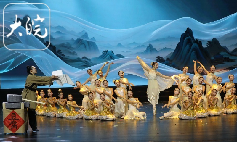 记者现场看到,晚会以淮南深厚文化底蕴为底色,将千年文脉、乡土滋味、现代舞蹈、传统韵律与前沿科技巧妙串联。歌舞乐《二十四节气歌》溯源《淮南子》智慧,在四季轮转中展现“天人合一、万物和谐”的文明韵律;幼儿舞蹈《草莓派对》以“中国草莓之乡”淮南曹庵镇为灵感,满溢乡村振兴的甜美气息;少儿情景剧《牛肉汤里的奇妙世界》、少儿歌舞《淮畔童舞 牛肉汤香》,以舌尖乡情唤醒城市记忆,演绎烟火淮南的温暖传承。当代芭蕾《磨转千年》诗意再现豆腐诞生历程,以艺术之美诠释了八公山下的千年匠心与水土智慧。