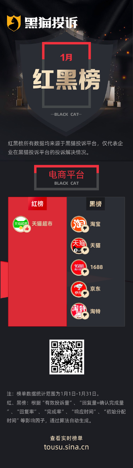 黑猫投诉1月行业红黑榜单