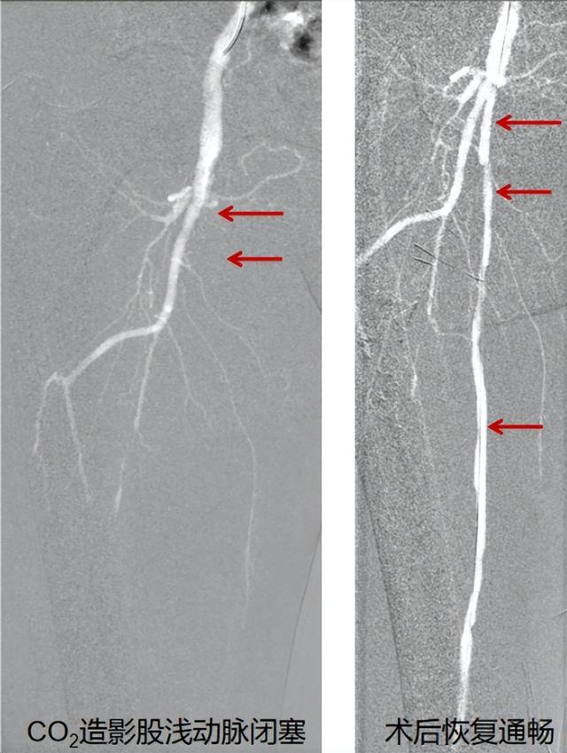 手术当日,医生从导管内注入CO₂替代碘剂,通过DSA设备实时显影。2个小时手术顺利完成,周爷爷完全闭塞的右侧股浅动脉顺利开通,术后疼痛症状消失,走两里路不费劲。更令人欣喜的是,他的肾功能指标在手术前后没有明显变化!