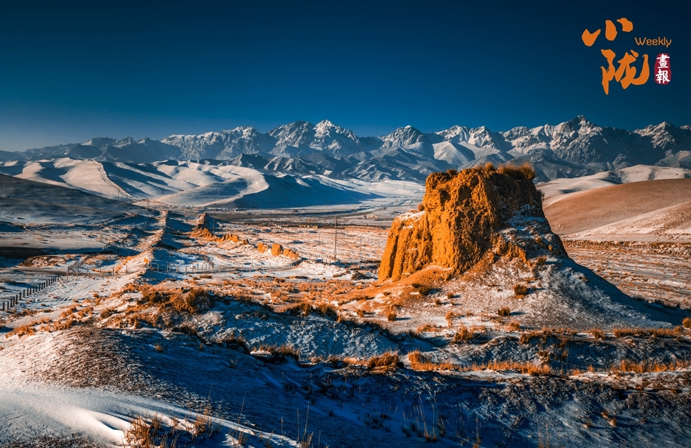 洁白的马牙雪峰在远处闪烁着冷冽的光芒,巍峨而孤高;而眼前,明汉长城的夯土墙体在阳光下泛着温暖的土黄,宛若大地的血脉。这一冷一暖在此相遇——一端是自然雕琢的冰晶诗篇,一端是人类写就的黄土史诗,共同构成一幅跨越千年、连接天人的壮阔画卷。