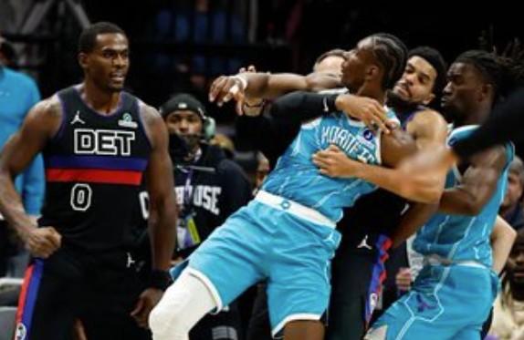 Shams表示:“据ESPN消息人士透露,NBA因活塞队与黄蜂队斗殴事件对以下球员处以禁赛处罚:以赛亚-斯图尔特:7场;迈尔斯-布里奇斯:4场;穆萨-迪亚巴特:4场;杰伦-杜伦:2场。”