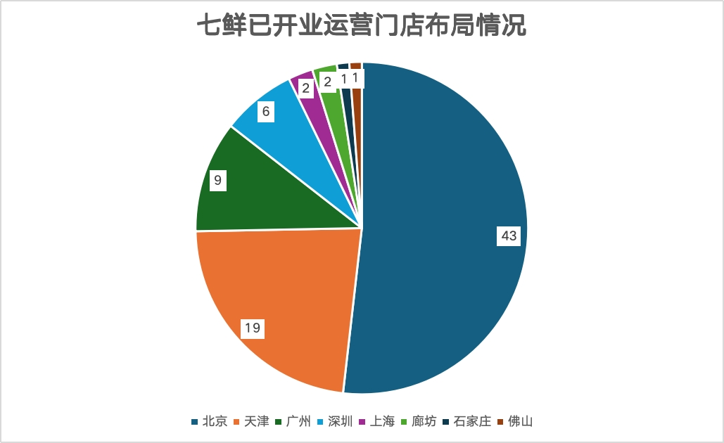 商业客查阅七鲜小程序发现,已开业运营七鲜超市共有83家,其中43家门店位于北京,占比超过五成,另外天津布局了19家门店,广州有9家,深圳6家,布局仍高度集中。