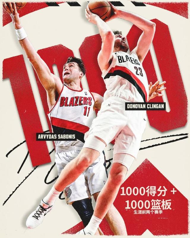 开拓者官方表示,大个子的传承。克林根成为自阿维达斯-萨博尼斯之后,首位在生涯前两个赛季就拿到1000分+1000篮板的开拓者球员!