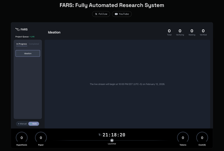 明天上午11点,FARS的直播将在analemma.ai/fars上线,同时在多个社媒平台同步播出。在接下来约一个月里,这个系统将在公众面前从零开始做科研,所有产出通过其GitHub账号(github.com/fars-analemma)实时公开。