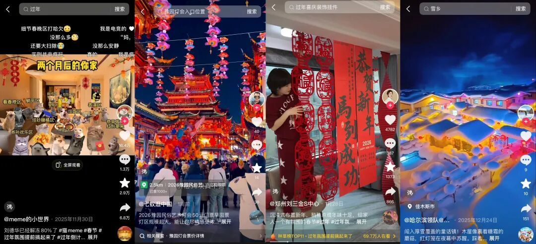 抖音上的种种热点话题表明,“新年味”没有固定模板,它是用户在抖音平台最自然鲜活的表达,藏着对美好生活的向往。