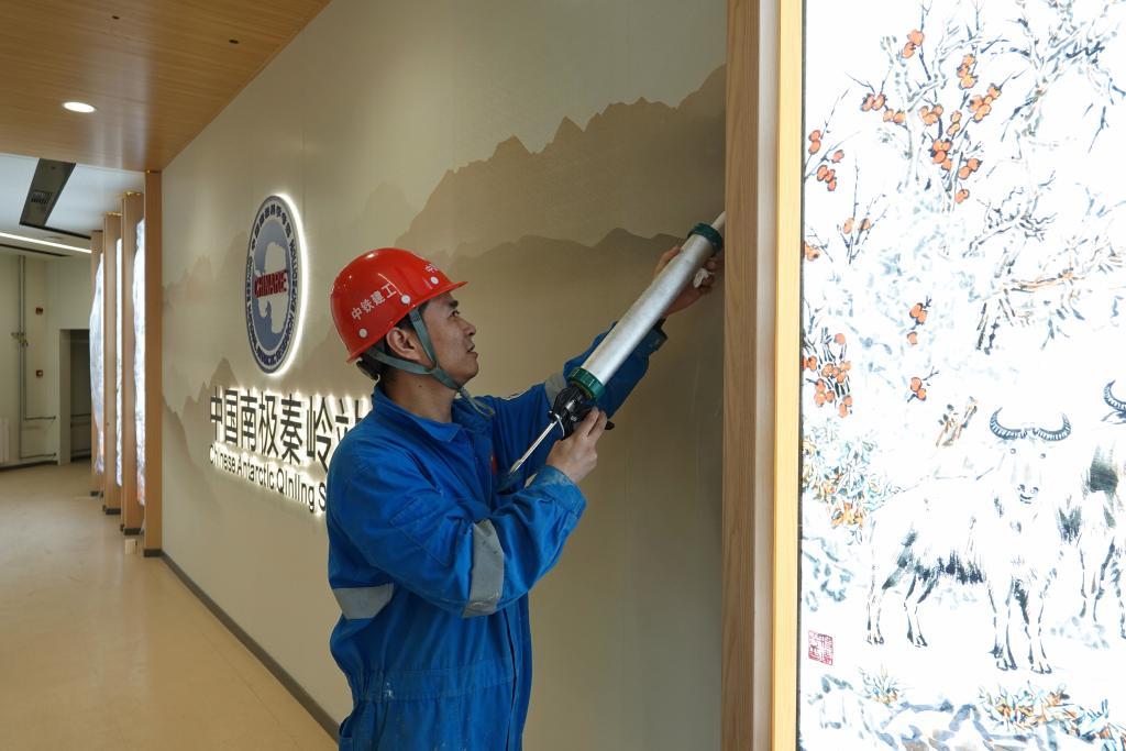 中铁建工集团南极秦岭站项目装饰负责人马斌正进行装饰收尾工作。新华社顾天成 摄