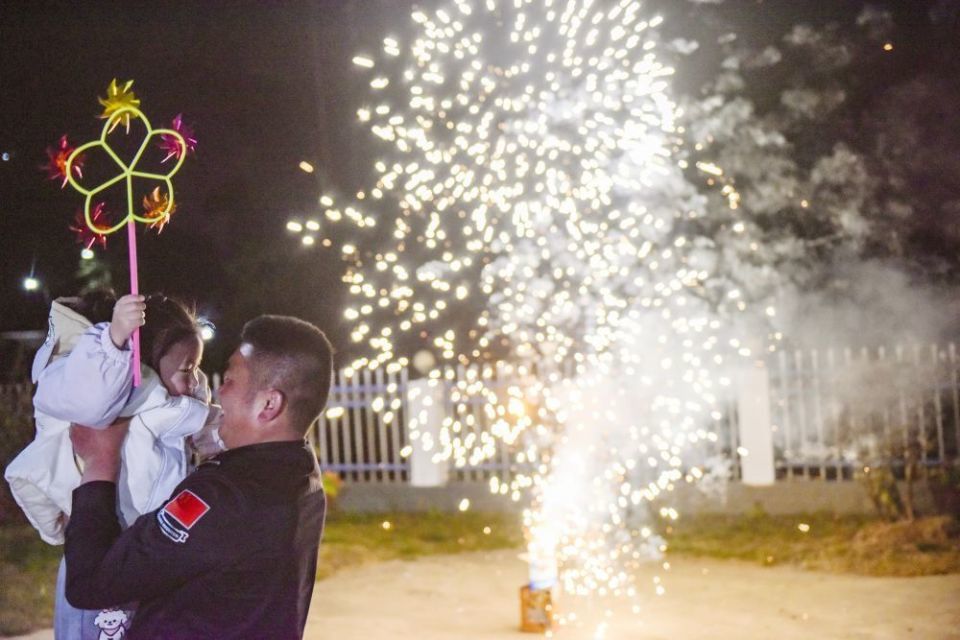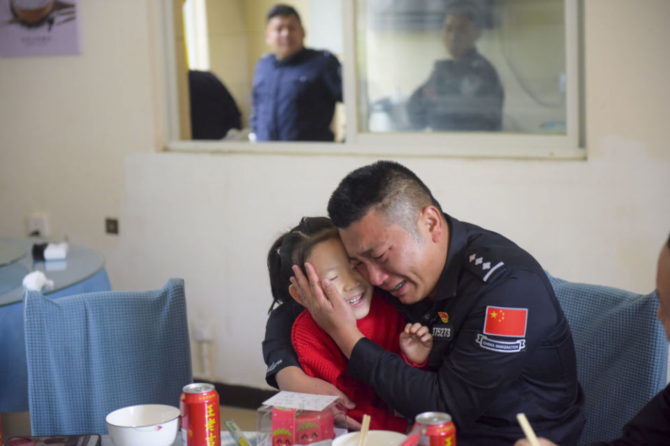妻子张文杰(右)想尽办法多带一些好吃的给杨睿。新华社发