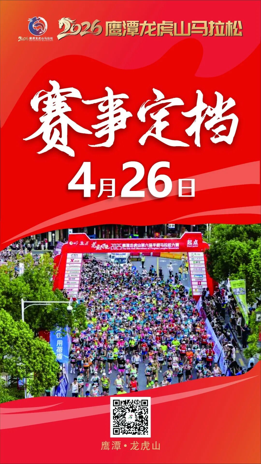本次赛事升级为全程马拉松(42.195 公里)与半程马拉松(21.0975 公里) 两大竞技项目,邀八方跑者奔赴龙虎山,在丹霞仙境中跑出速度与诗意!